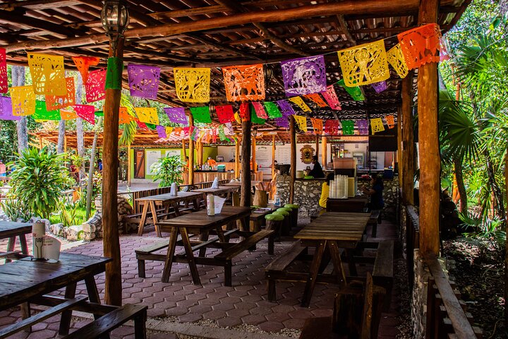 Después de una mañana de aventura, disfruta de un delicioso almuerzo de fajitas de pollo recién preparadas rodeado de la paz de la naturaleza. Este tour combina a la perfección adrenalina, cultura y los impresionantes paisajes del Caribe mexicano para un día inolvidable.