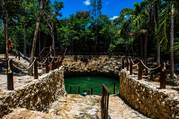 Experimenta lo mejor de la Riviera Maya en una aventura que combina tirolesas, un paseo en cuatrimoto y un refrescante baño en un cenote. Vuela sobre el dosel de la selva en emocionantes tirolesas mientras admiras las impresionantes vistas del paisaje tropical.