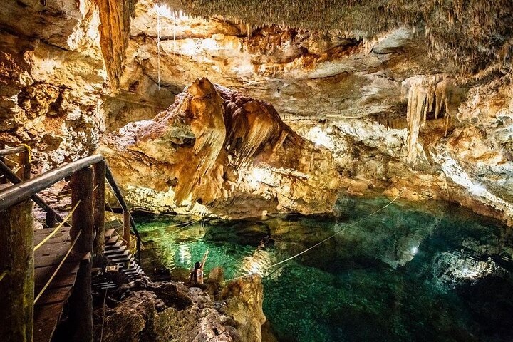 Nade, flote o simplemente contemple la belleza que le rodea. Desde los apacibles ecos de una piscina subterránea hasta las exuberantes vistas de la selva sobre un cenote abierto, esta es la naturaleza en su máxima expresión.